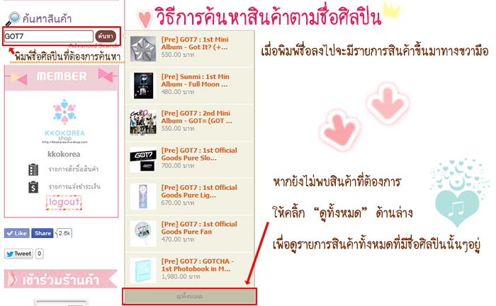 FAQ&A ตอบคำถามที่พบบ่อย Q1 : อยากได้ของ แต่ไม่รู้จะหายังไง A: ลองหาดูจากหน้า ค้นหา หรือถ้าพอทราบชื่อสินค้า และเวปไซต์ที่เกาหลี สามารถสอบถามได้ที่ เวปบอร์ด หรืออีเมลมาที่ kkokorea@hotmail.com Q2 : ถ้าอยากสั่งของต้องทำยังไง ? A: ลองหาสินค้าตามหมวดห…