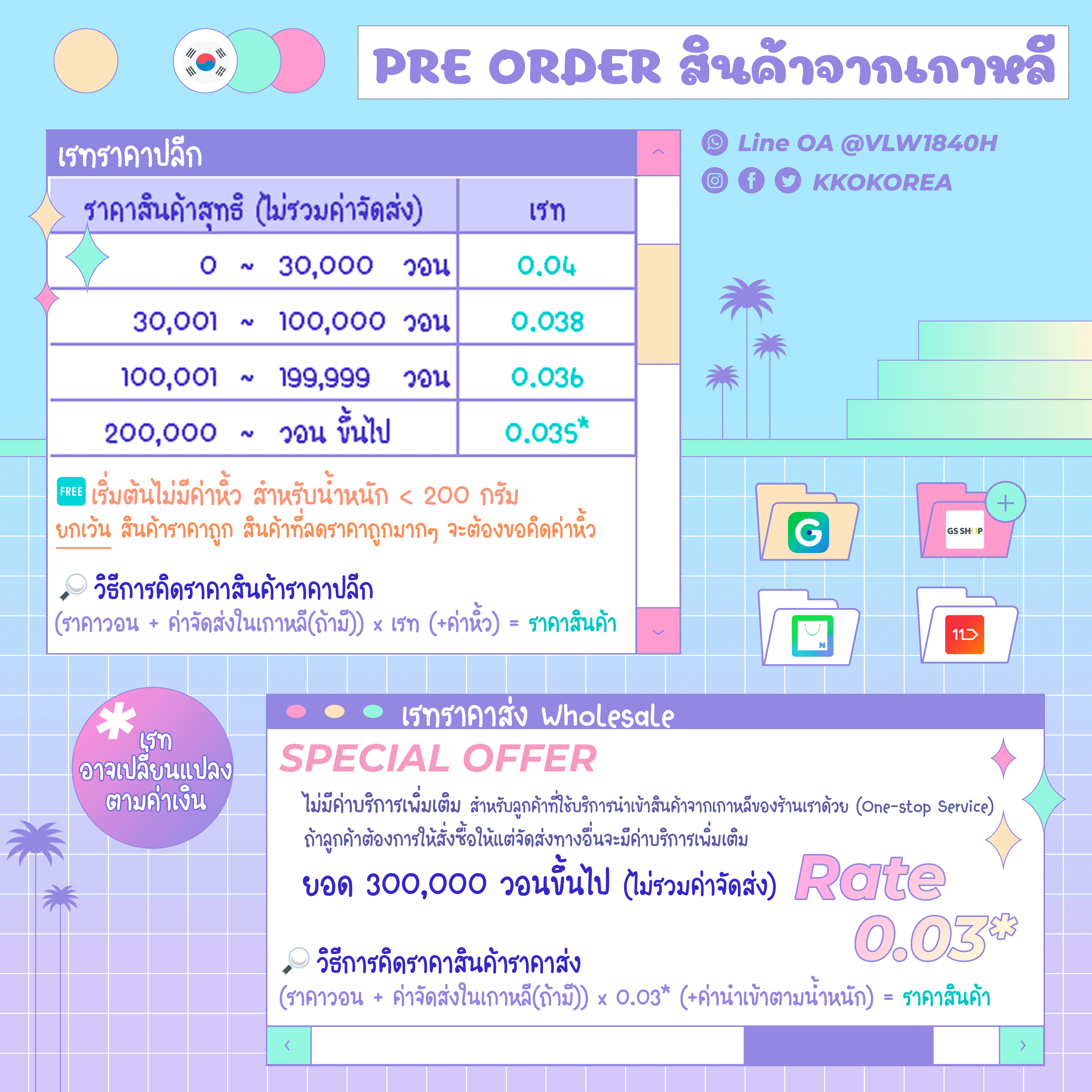 อาจมีการเปลี่ยนแปลงของค่าหิ้ว เนื่องจากจะคิดจากน้ำหนักของสินค้า | |||||||