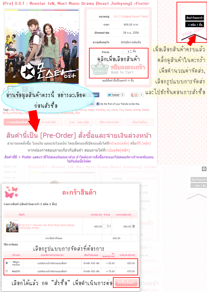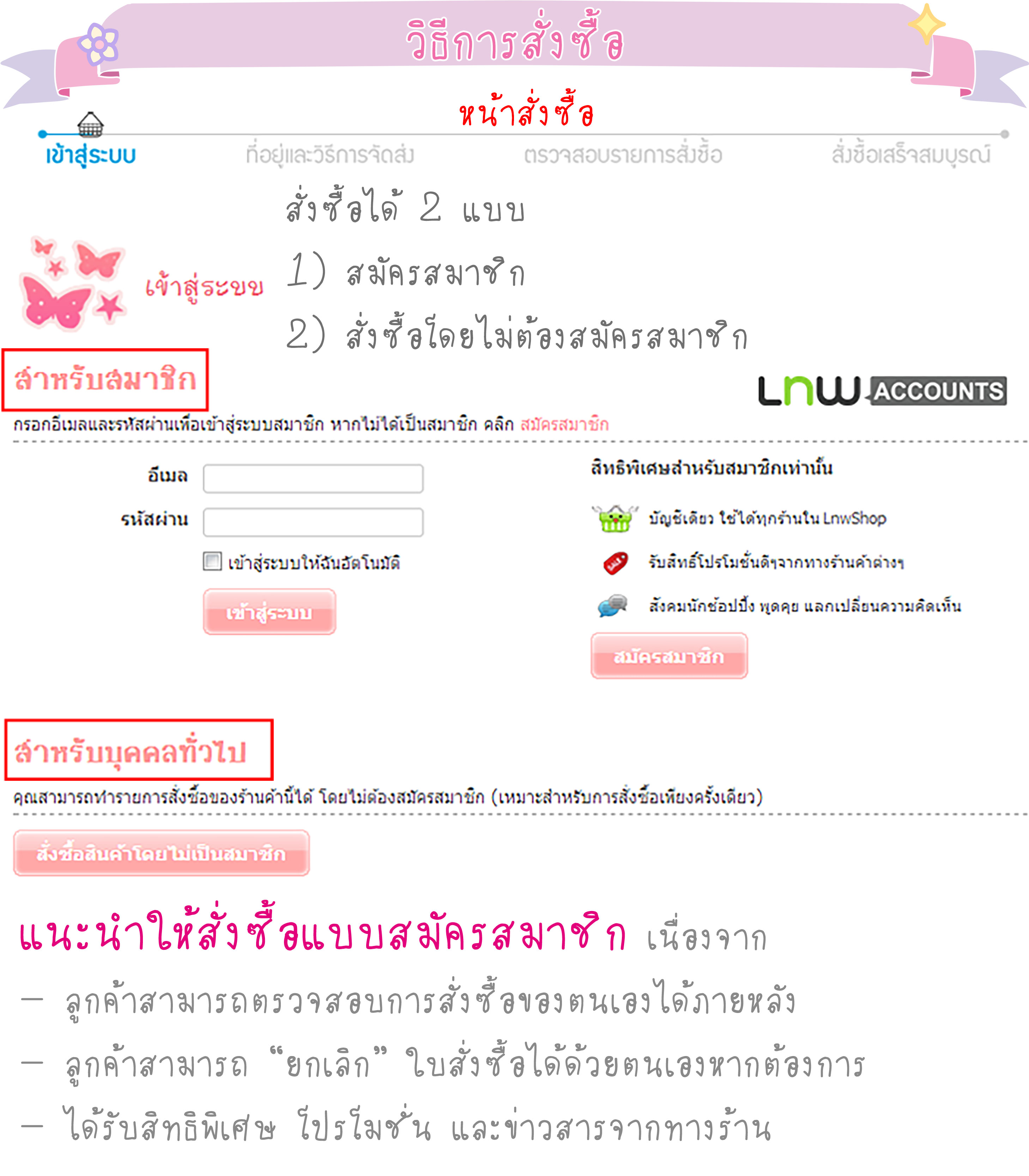 วิธีการสั่งซื้อ สำหรับสินค้าที่มีลงหน้าเวปไซต์นี้